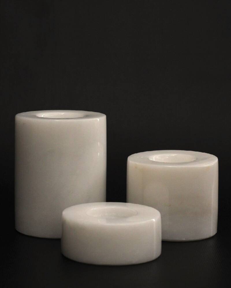 Mumluklar doğal mermerden, tamamen el işçiliği ile üretilmiştir. Doğal taş olduğu için damarların dağılımı ve yoğunluğu değişiklik gösterebilir. 3'lü set halinde satılmaktadır.