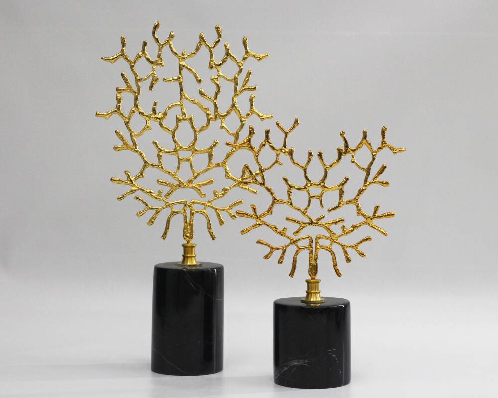 Dekoratif objeler doğal mermerden, tamamen el işçiliği ile üretilmiştir. Doğal taş olduğu için damarların dağılımı ve yoğunluğu değişiklik gösterebilir. Dal detaylar tamamen pirinç malzemedir.