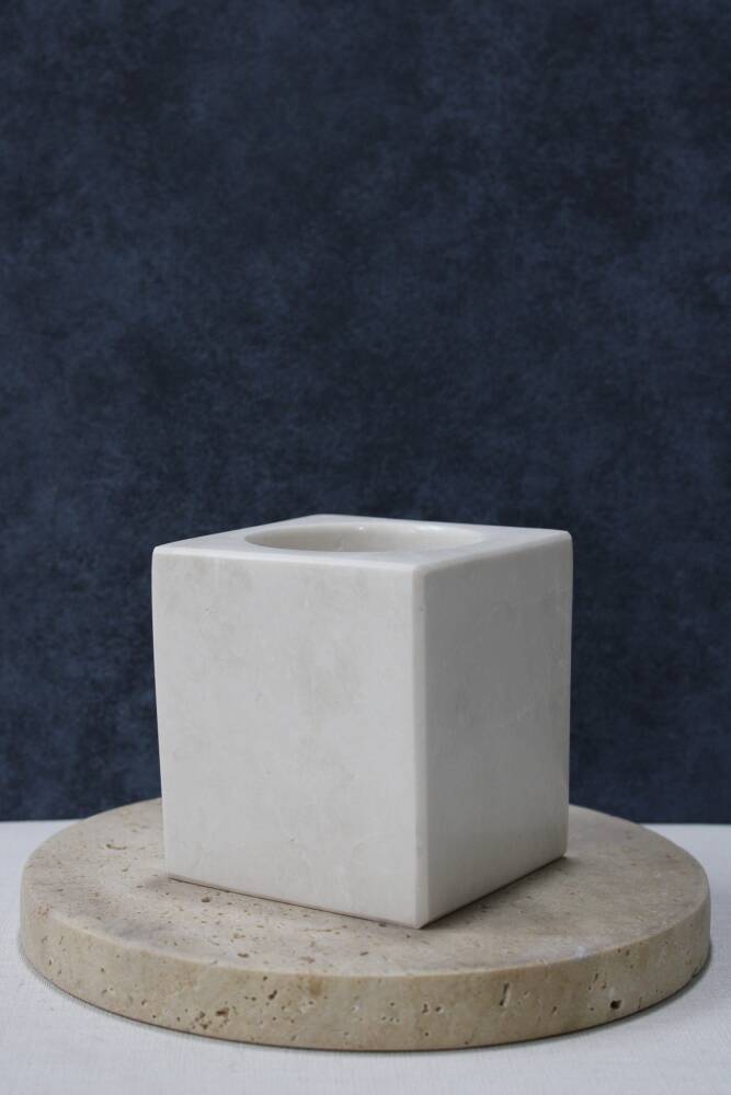 Kare bej mermer diş fırçalık, bir adet kare mermer kutu içermektedir.