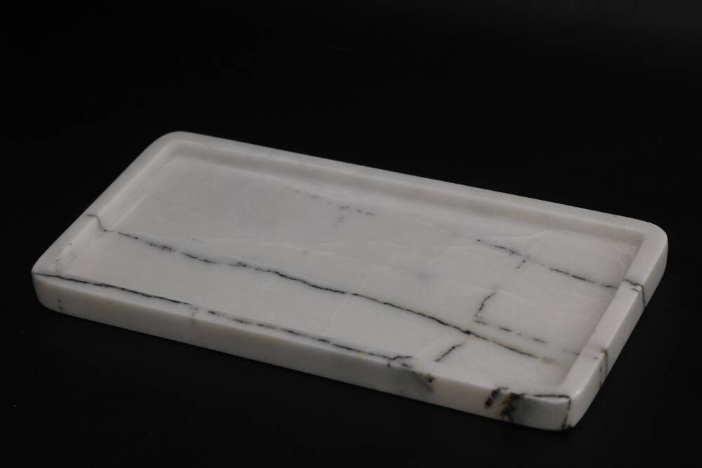 Dekoratif tepsiler doğal mermerden, tamamen el işçiliği ile üretilmiştir. Doğal taş olduğu için damarların dağılımı ve yoğunluğu değişiklik gösterebilir.