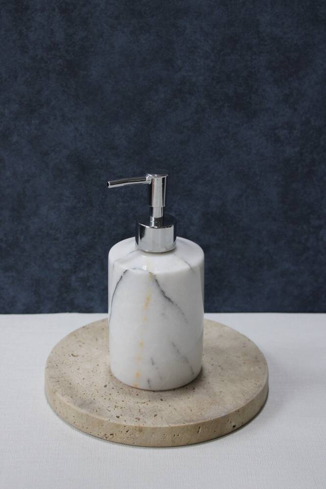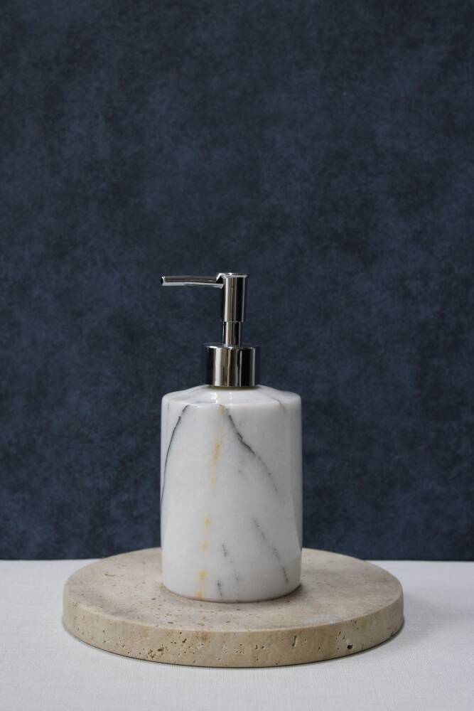 Leylak mermer sıvı sabunluk bir adet silindir mermer kutu ve bir adet pompa içermektedir.