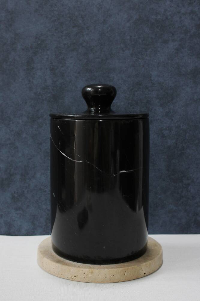 Siyah mermer çöp kovası bir adet silindir mermer kutu ve bir adet kapak içermektedir.