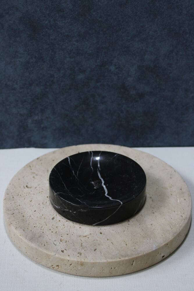 Siyah mermer katı sabunluk bir adet yuvarlak tutucu içermektedir.